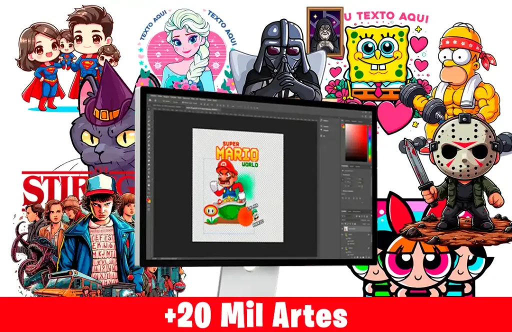 +20 MIL artes exclusivas e atualizadas, nos formatos: PSD, AI, CDR, PDF e PNG transparente, ideais para impressões de alta qualidade.